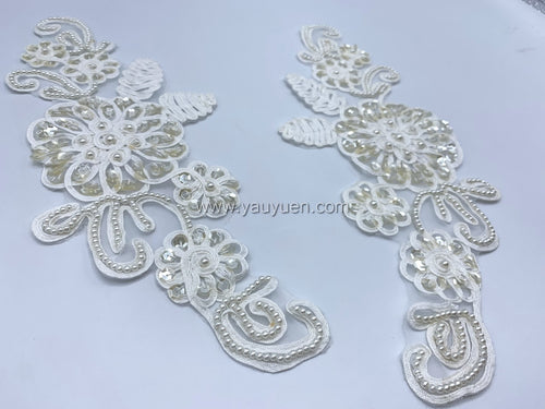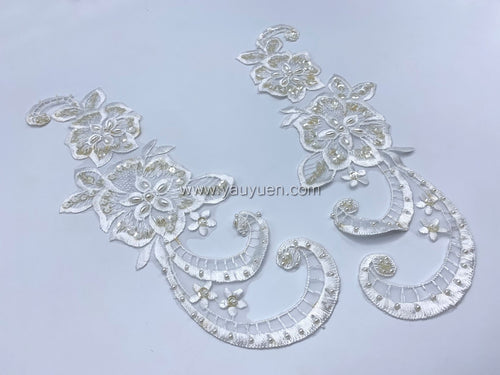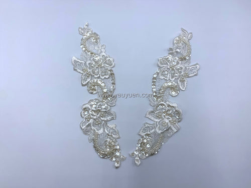 FS-760904 - Beaded Embroidery Motif Lace - Pair (1 colour)