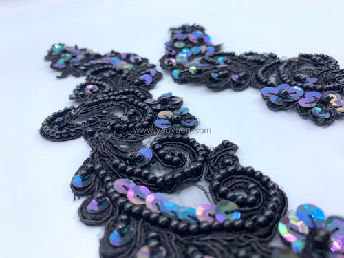 FS-760115 - Beaded Embroidery Motif Lace - Pair (1 colour)